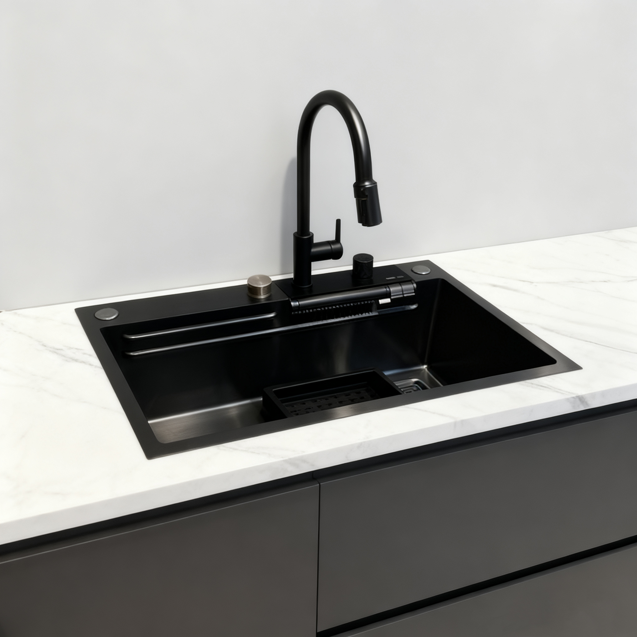 التثبيت المرن: يدعم 3 طرق تثبيت (تثبيت أعلى ، تحت التثبيت ، التثبيت بالفلاش) ؛ الصرف الكبير قطره + سلة المرشح يمنع الانسداد ويسمح بالصرف السلس.