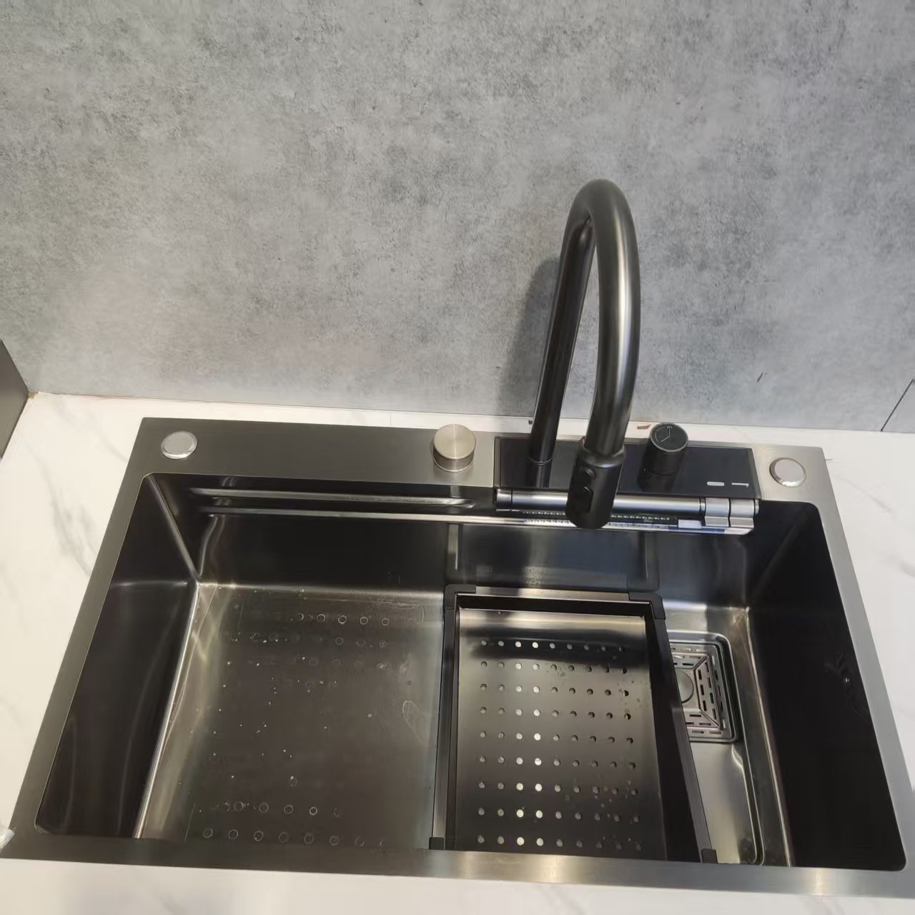 The standout deep basin fits large cookware (stockpots, baking sheets) easily, minimizing splashes and simplifying washing/soaking. Made from durable materials with sound-dampening design, it reduces noise, and the seamless single-basin structure makes cleaning quick. Compatible with most countertops and faucets, it comes with easy-install hardware—blending style and practicality for long-term use.